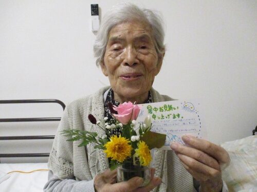 暑中見舞いをポケットに入れてらっしゃいます(^▽^)