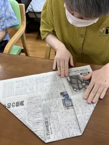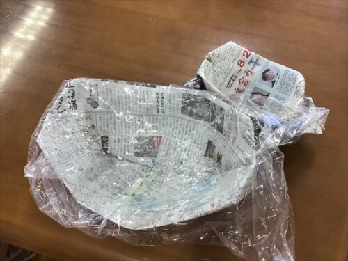 サランラップやビニールをかけて新聞紙が濡れないようにします。