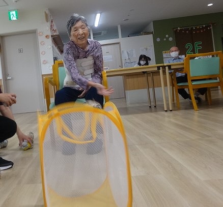 さわやか室蘭弐番館 2階 5日午後の様子♪ 2024-09-11 2024-09-11 皆様こんにちは♪ 5日の様子をお届けします おやつ前にボール入れを楽しみました 一人10球で競いました 両手でそれ~