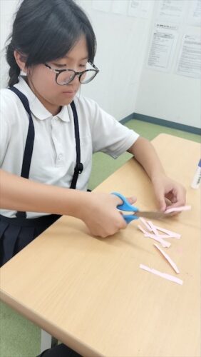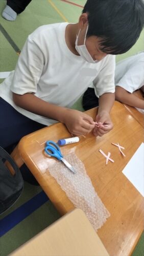 次は、切ったものを貼り合わせて、コスモスの形にしていきます!