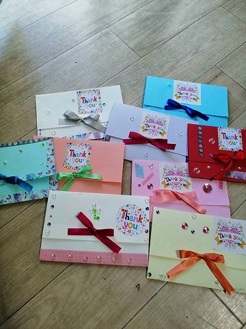 この機会に、ありがとうの気持ちを伝えたいと、9月11日の活動はギフトカード作りをしました。