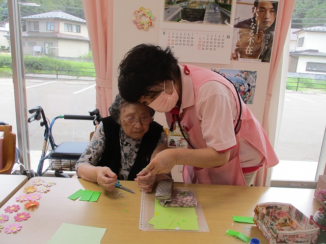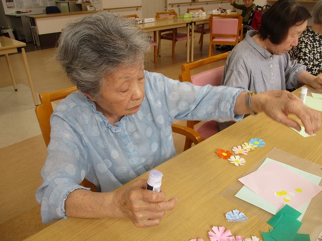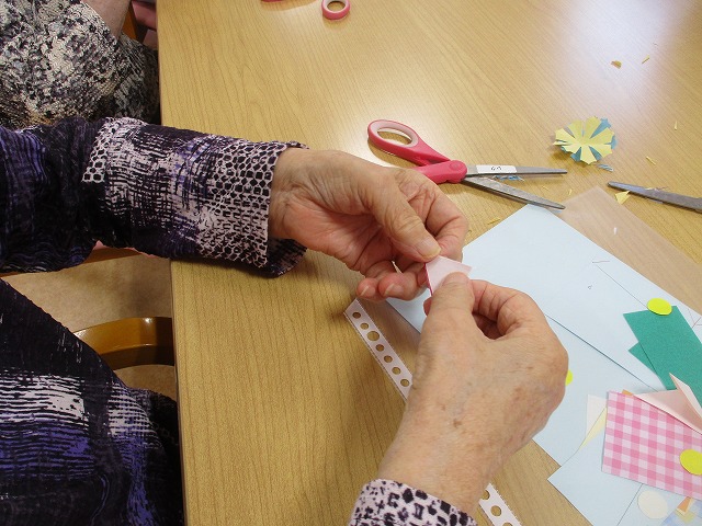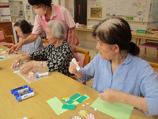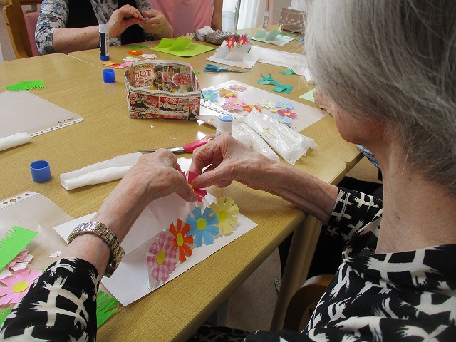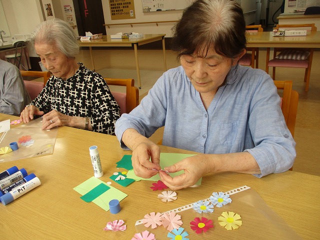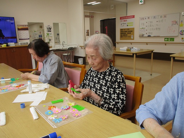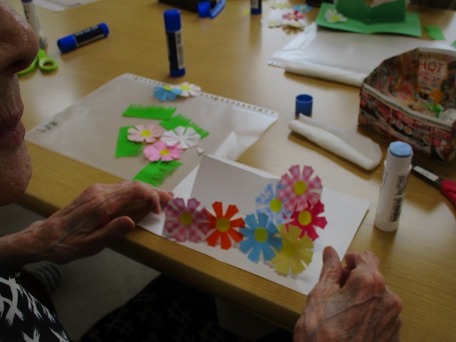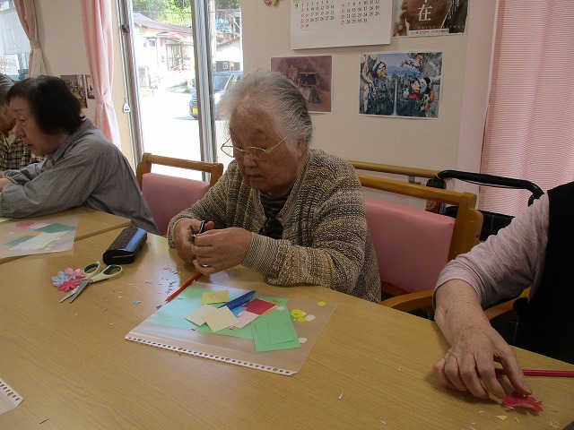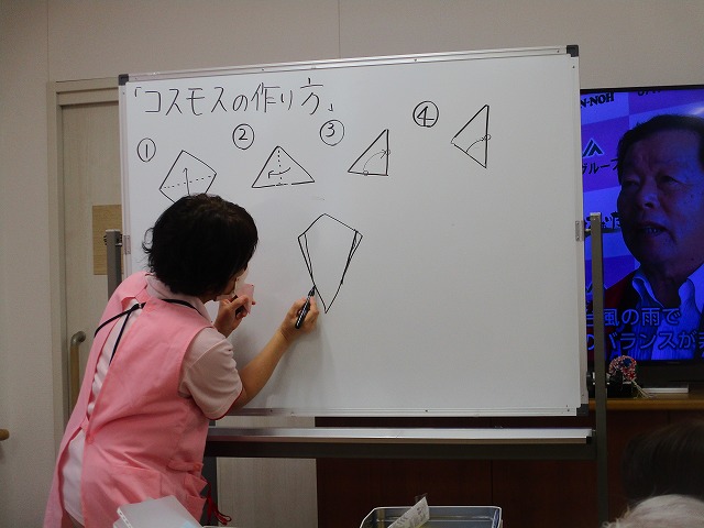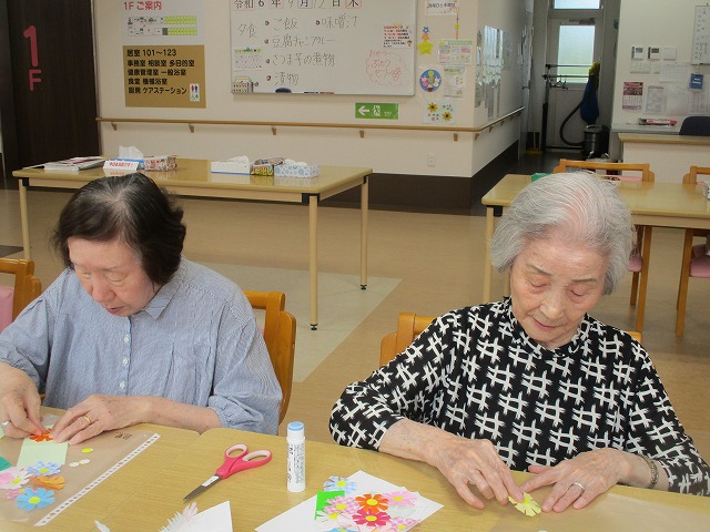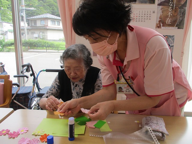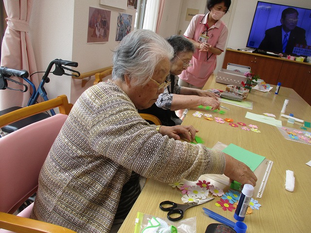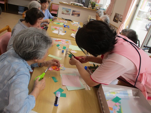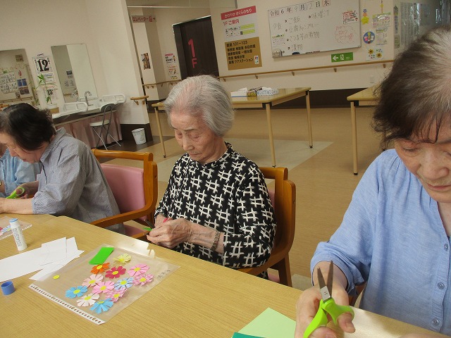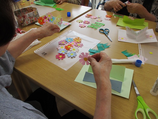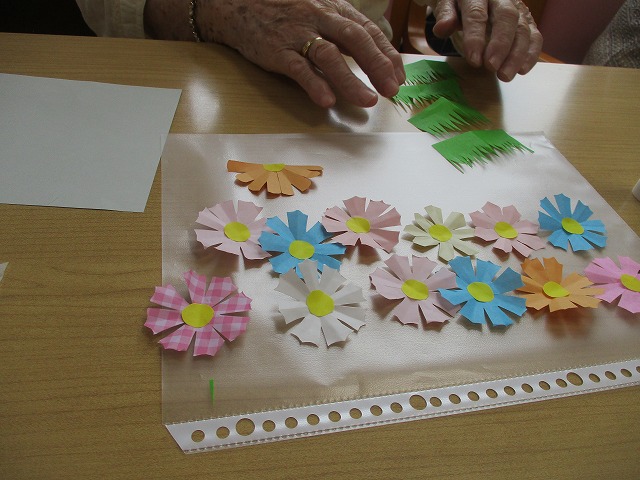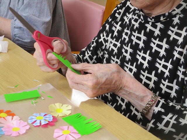 本日のレクリエーションは、『コスモスの飾り』を作りました☆