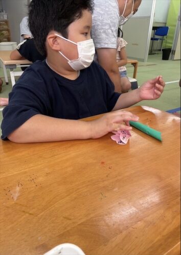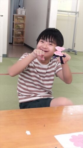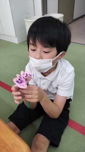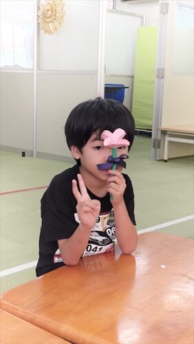 花と茎をくっつけて、リボンも貼り付けたら完成‼️