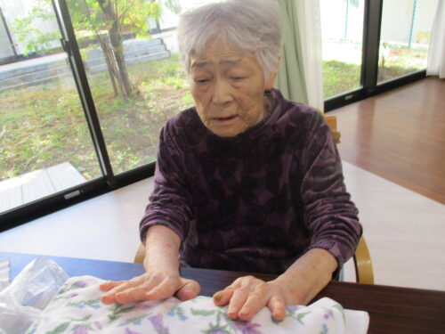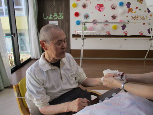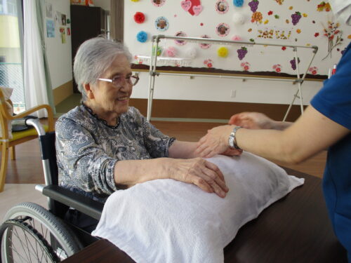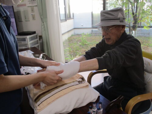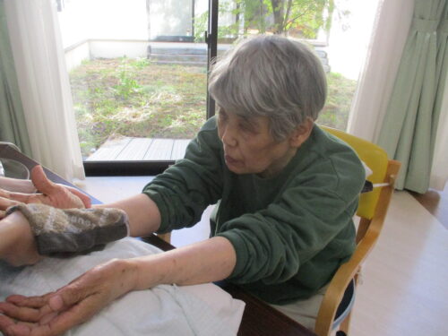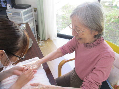 とある日の午後です。敬老の日も近いためリラックスして頂こうと考え女性にはネイル、男性にはハンドマッサージを致しました♪