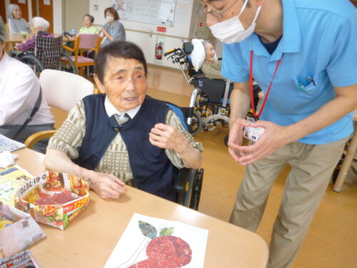 斎藤PTが切った同系色の新聞で入居者様が貼り絵を作ってくださっていました😮😮✨✨