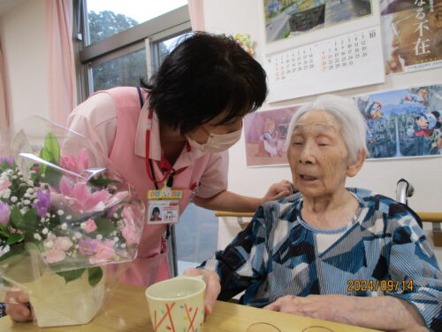 さて、明日は敬老の日ということで一足先にご家族様からお花が届きました🌸.・。~🌸・。.~🌸