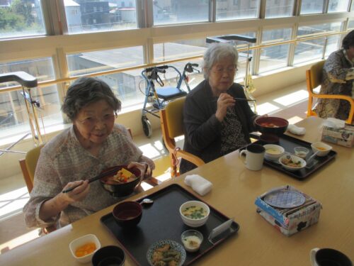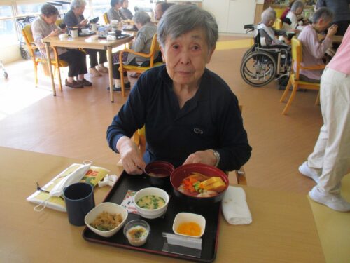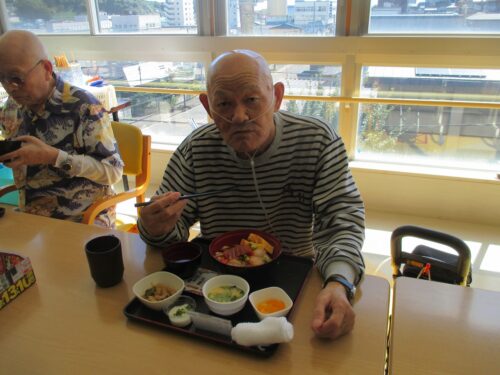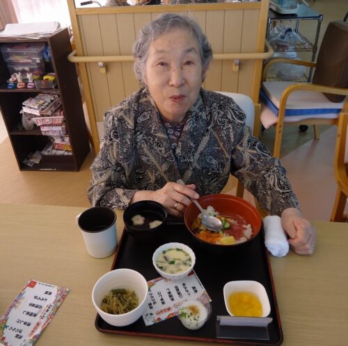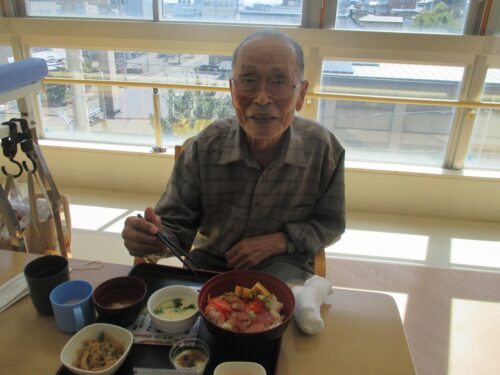 敬老の日の昼食は、ケータリングで海鮮丼が提供されました♪