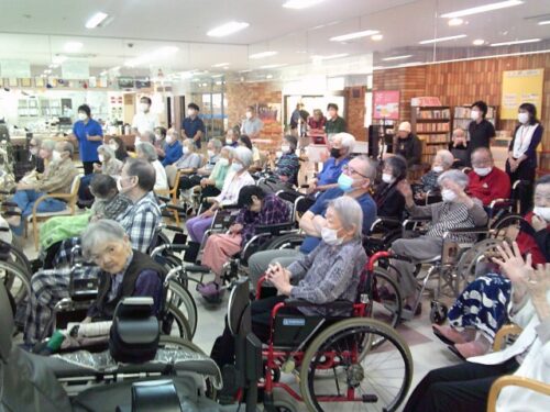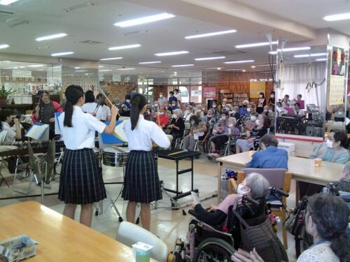 さわやか立花館 敬老会 2024-09-17 2024-09-17 先日敬老会と精華女子高等学校によるブラスバンドの演奏会がありました! 入居者様だけでなく職員も演奏会をとても楽しみにしていました😊 普段はあまりリハビリなどに参加されない方も演奏会があると聞いてうれしそうな顔をされて参加されていました! 立花館河原