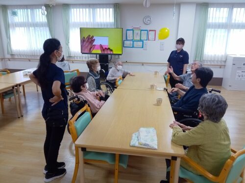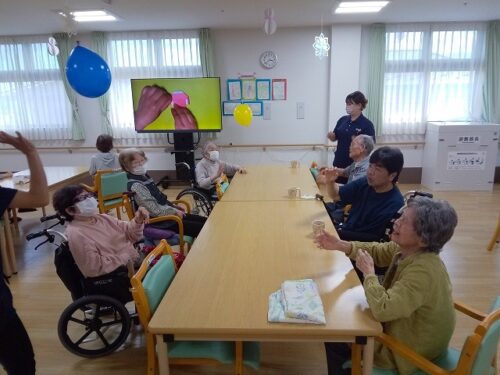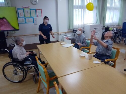 介護員さんとご利用者様二名から始まった風船バレーでしたが、気づけば六名にΣ(゚Д゚)