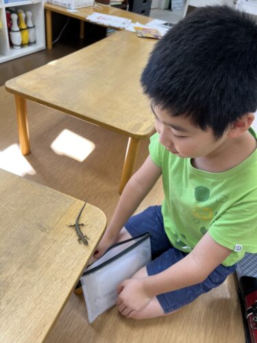 ある日、学校の校庭で捕まえたこの子を連れてきました😊