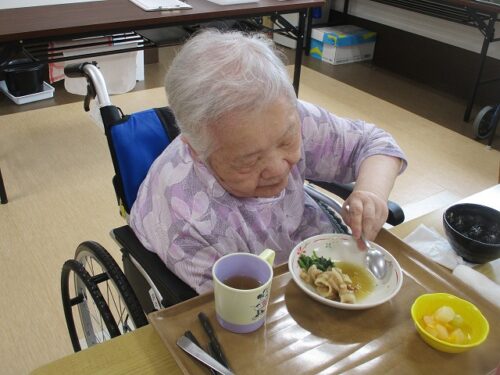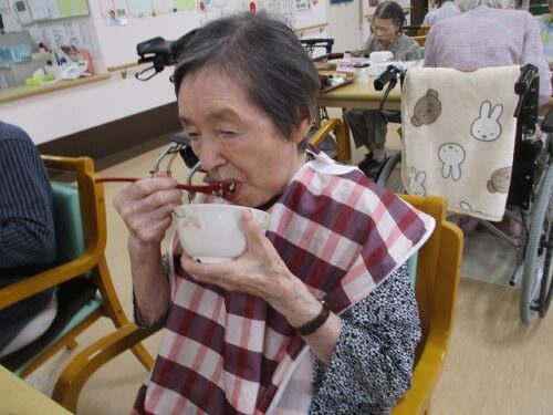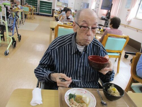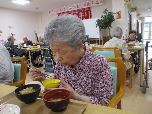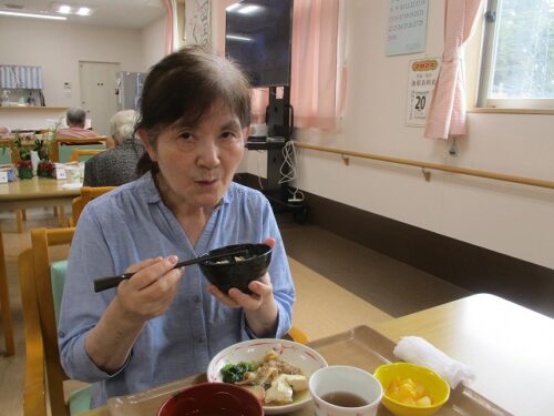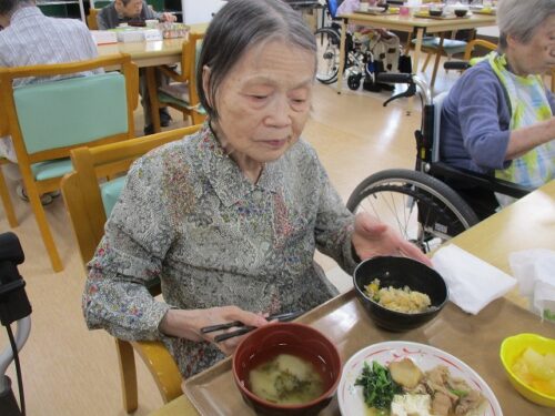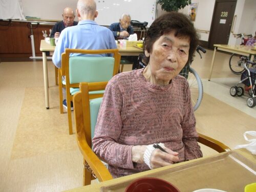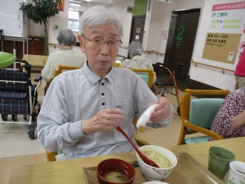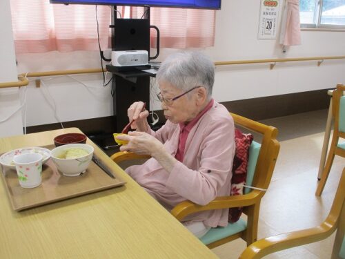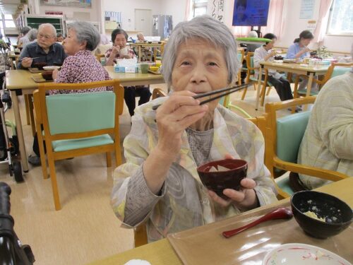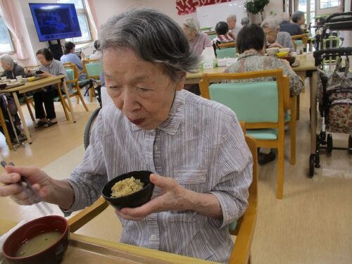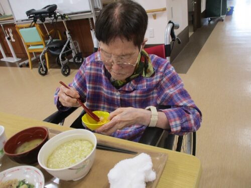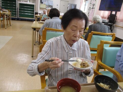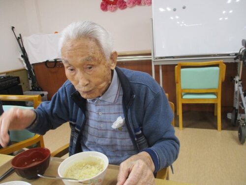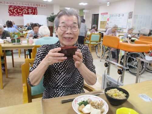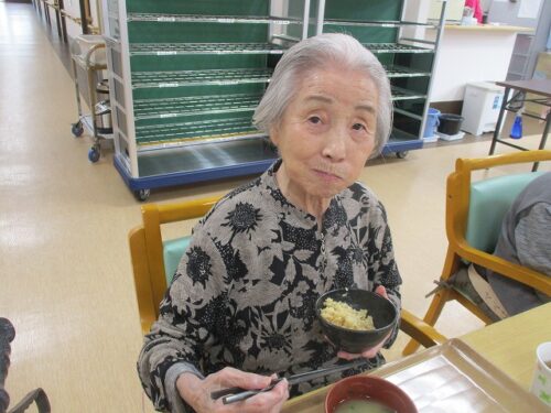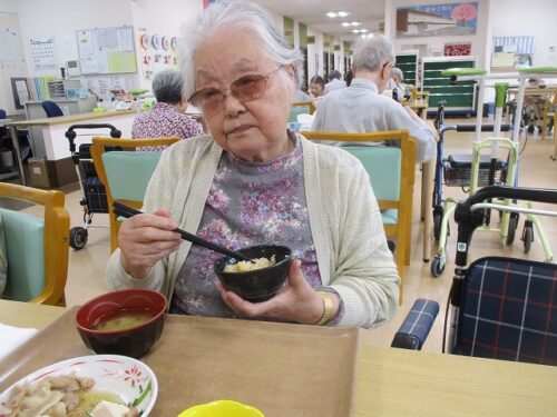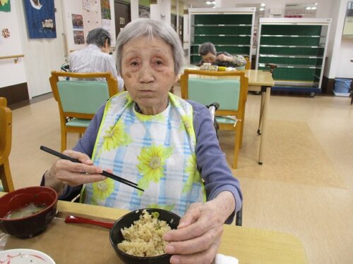 【秋の炊き込みご飯】でした。銀杏、キノコ、グリーンピース等入っており秋って感じでした。