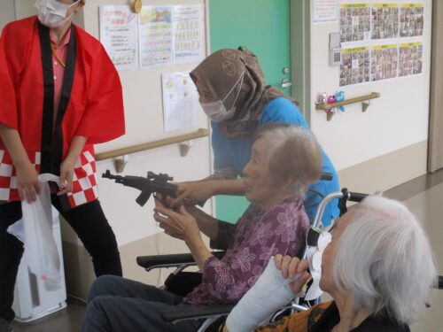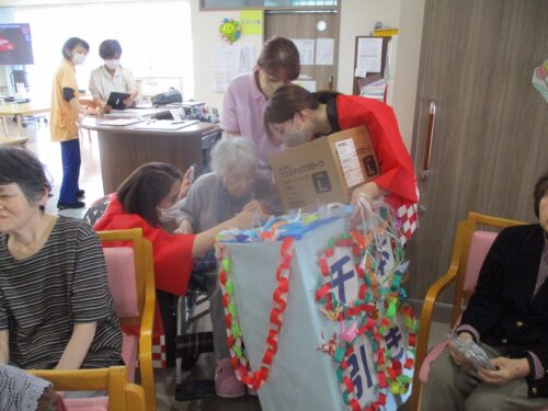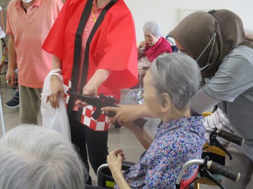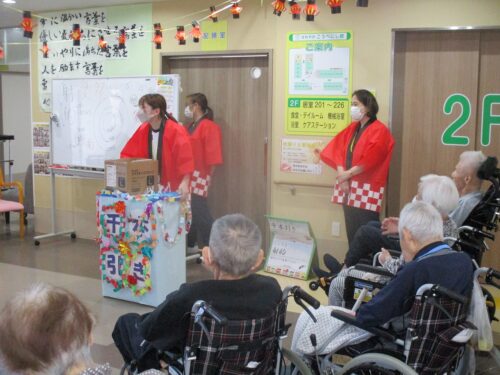 お菓子すくい、千本引き、盆踊り、射的の4つイベントがありました。