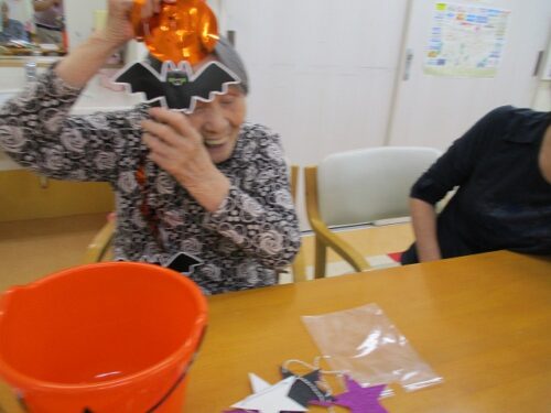 かぼちゃのバケツをかぶってみたり自分に飾り付けたりとなかなか作業は進みませんでしたが楽しく出来たので良かったと思います。
