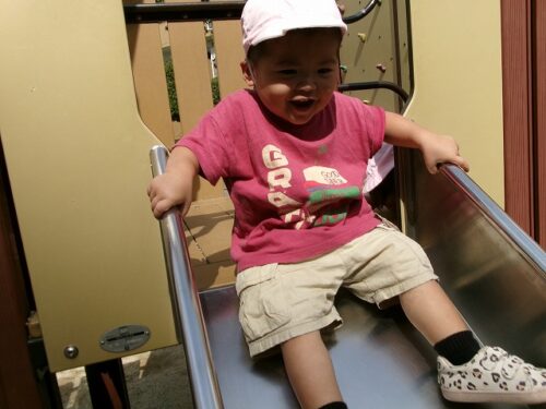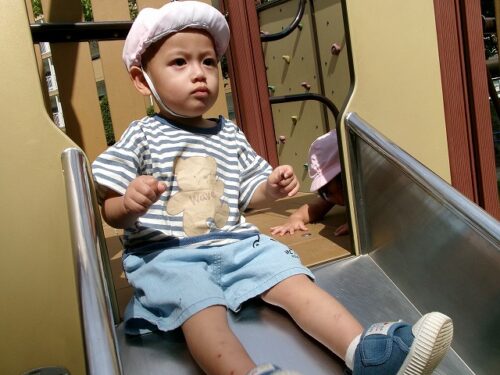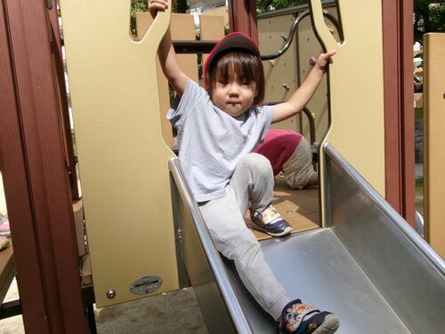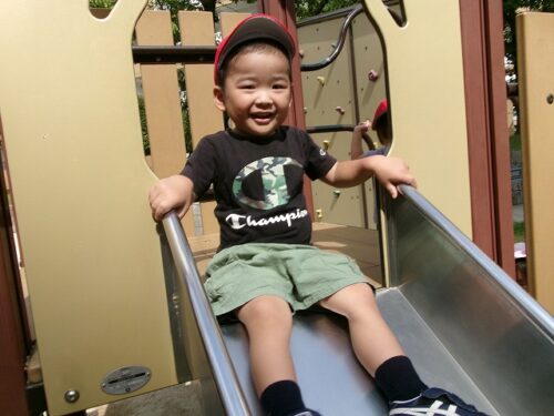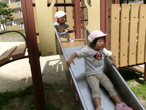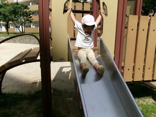 「せんせい~みて~すべろっかな~どうしようかなぁ~」