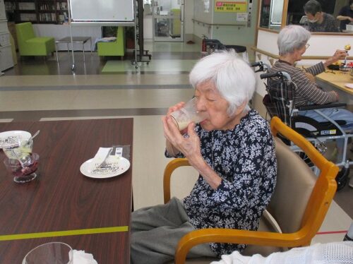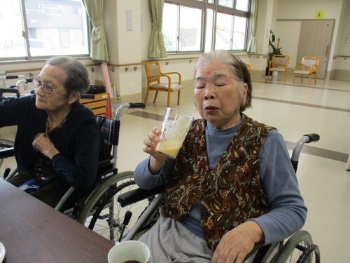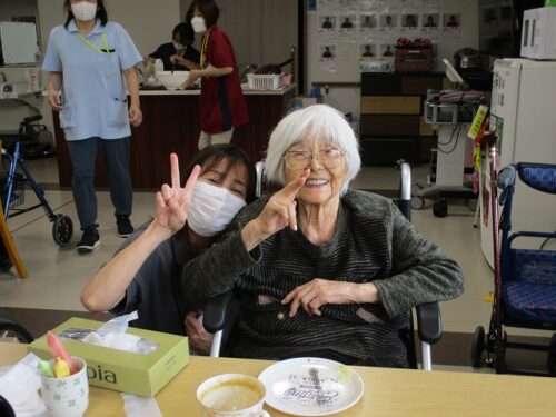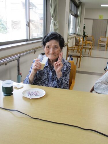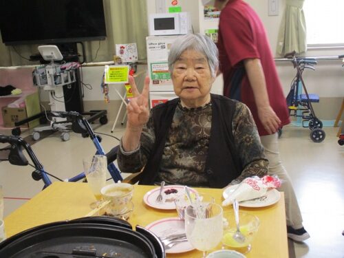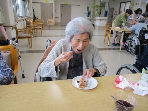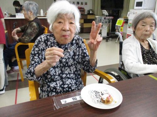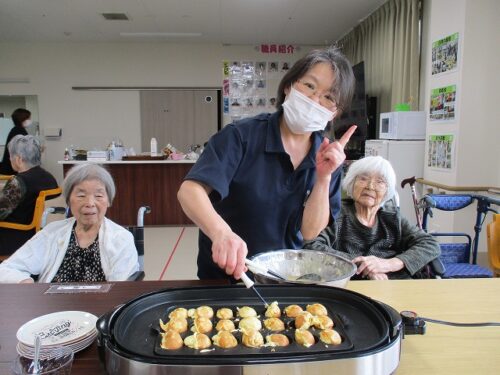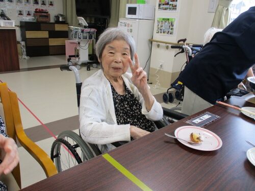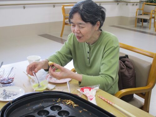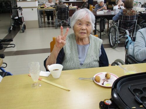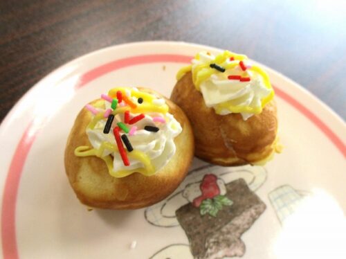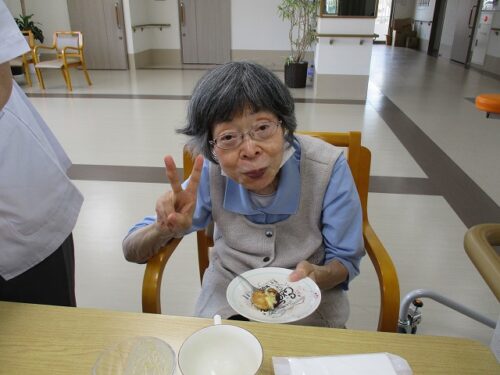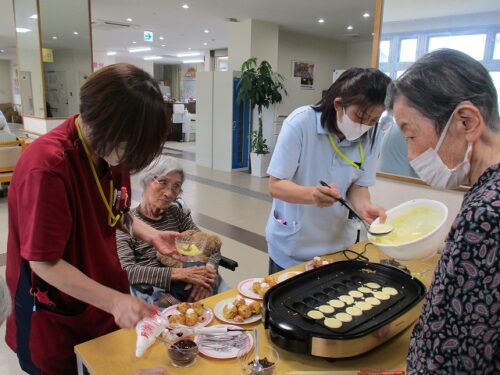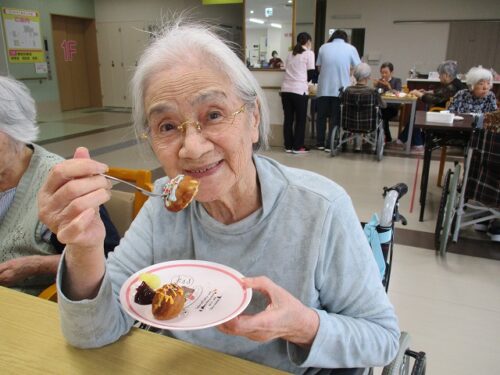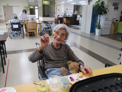 先日の調理レクで、入居者様と一緒に、ベビーカステラを作りました。