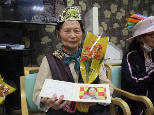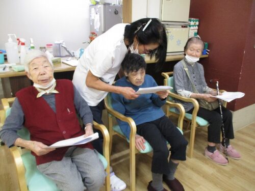 皆さんでお祝いした後は歌のボランティアさんと一緒に