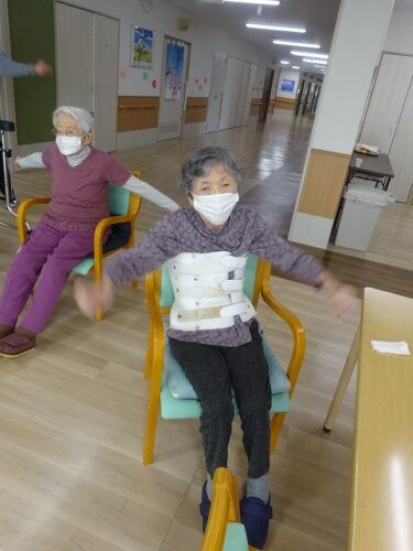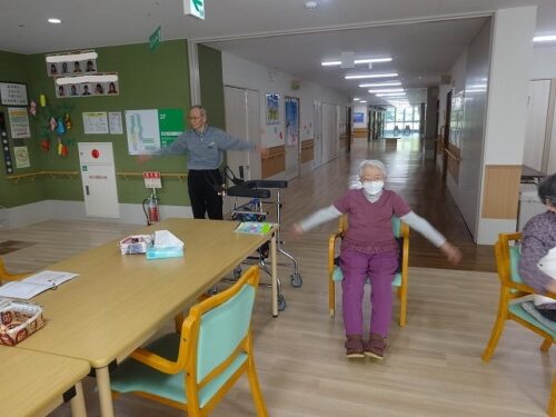 日付の確認後はラジオ体操です