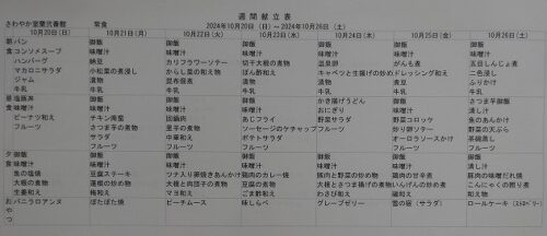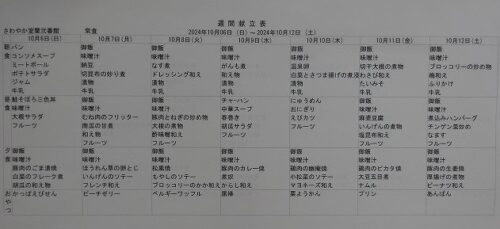 さわやか室蘭弐番館 10月 献立♪ 2024-10-01 2024-09-28 皆様こんにちは♪ 今月の献立をお届けします 行事食は26日(土) 昼食です ※食材の都合により急遽変更させて 頂く場合もあります ご了承ください