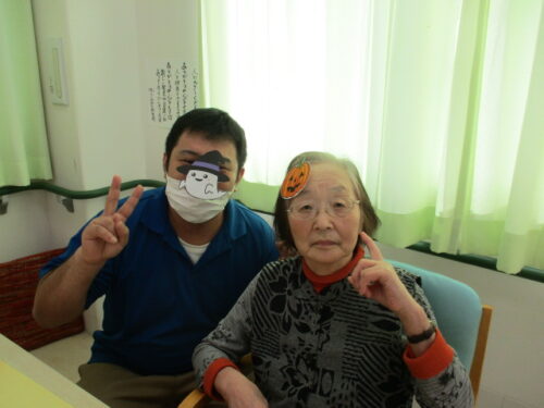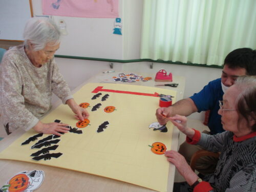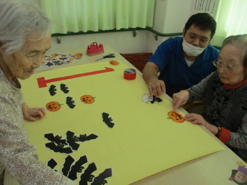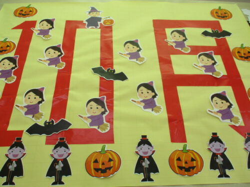 エレベーター前に貼る壁飾りを手伝って下さりました🎃