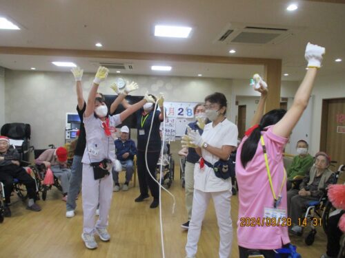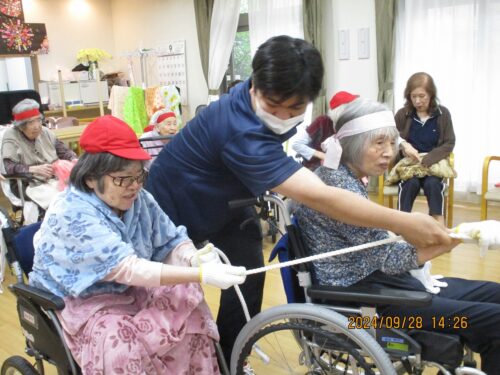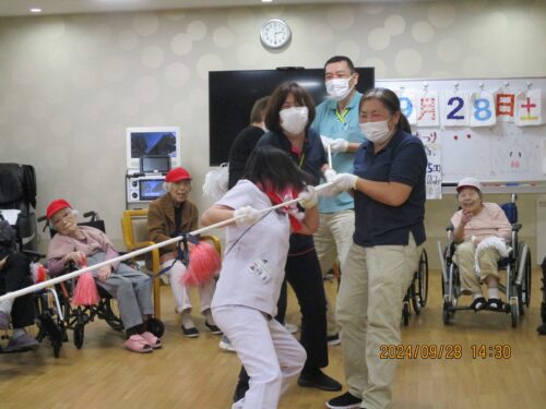 圓谷職員ガチでがんばってます、その後ろで施設長もマジです
