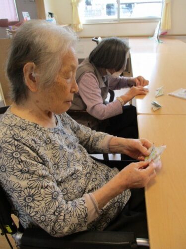 1階にご入居されているT様と2階にご入居しているH様も一緒に鶴を折りました🌟