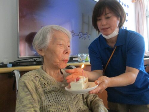 お誕生日のメッセージカードと、お花をお渡ししたところ