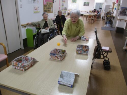 ピンポン玉入れゲームです!