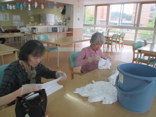 夕食で使用する、おしぼりたたみをお手伝い頂きました。