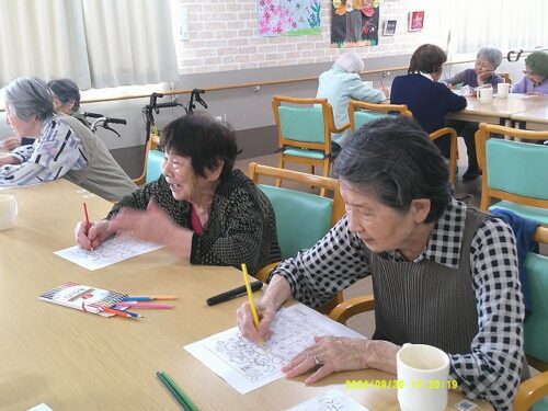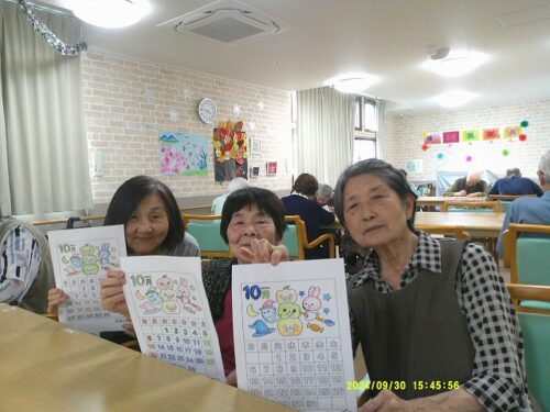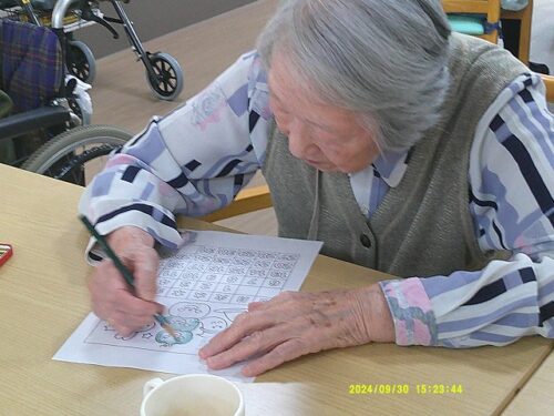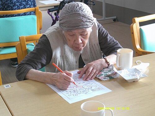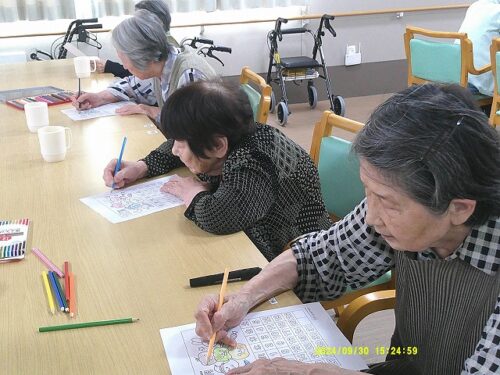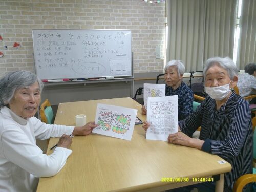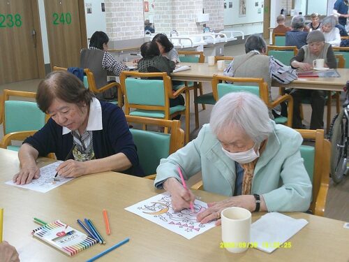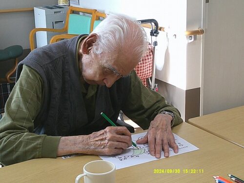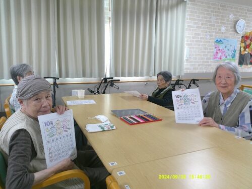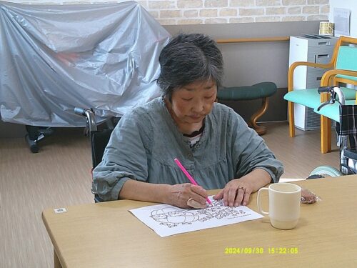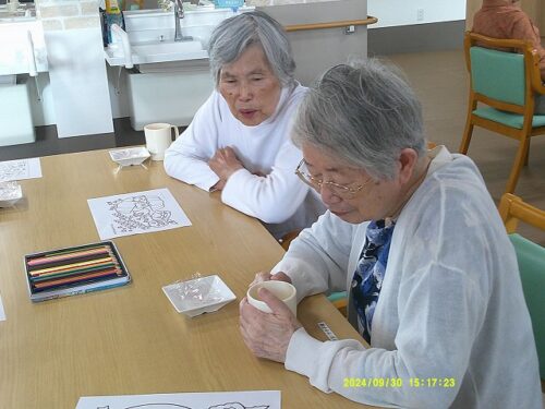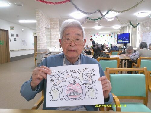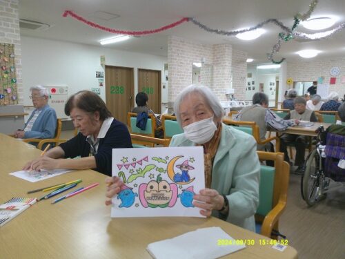 今日は皆様にハロウィンのぬり絵をして頂きました
