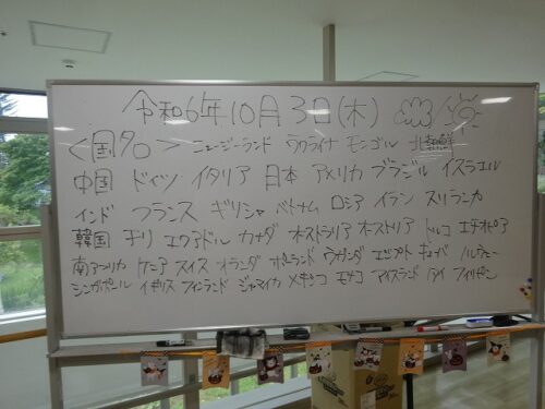 さわやか室蘭弐番館 2階 3日活力朝礼♪ 2024-10-04 2024-10-03 皆様こんにちは♪ 昨日の様子をお届けします 日付の確認後はラジオ体操です 体を反らしましょう 頭の体操は国名をお答え頂きました 笑顔溢れる一日になります様に☆