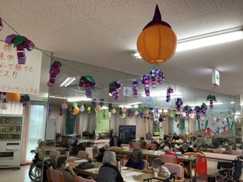 さわやか清田館 デイサービスのフロア飾り☆ 【さわやか清田館】 2024-10-04 2024-10-04 こんにちは✨ 今日はデイサービスのフロア飾りを紹介いたします😊 皆様に作って頂いた巨峰とシャインマスカットの飾りがとってもかわいく出来ました🔅 ハロウィンの飾りも出してすっかり秋です😊 清田DS 木塚