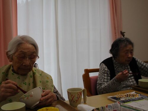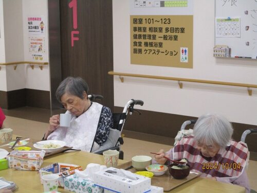 さわやかさくらのもり 午前中のお茶の時間 【さわやか さくらのもり】 2024-10-04 2024-10-04 こんにちは さくらのもりです 今日の午前中の様子です♪ お茶会をしていました。 将棋もしていた方もおります。 そうこうしているうちに昼食の時間となりました。 今日はチャーハンでした。 担当:伊藤