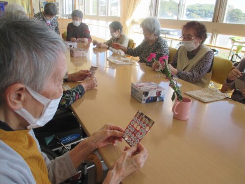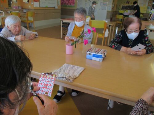 入居者様同士声をかけあい、ビンゴ大会を楽しまれておりました。