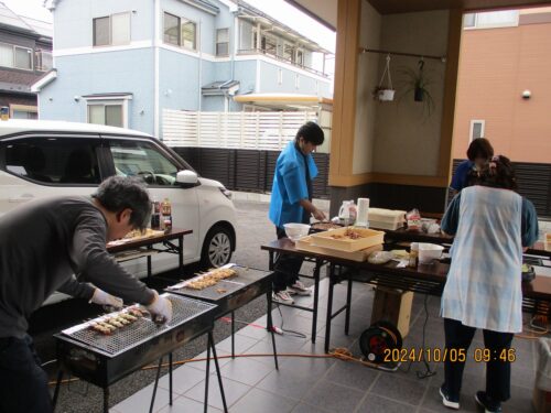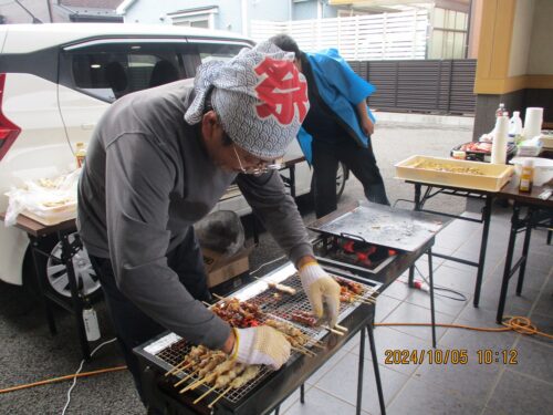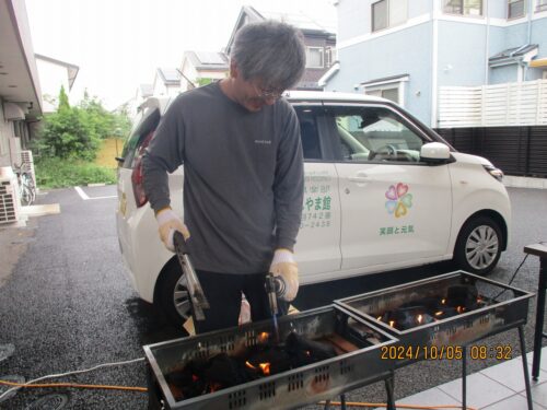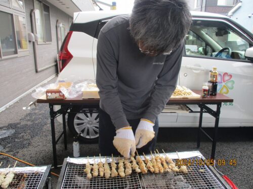 五月女施設長と美味しい焼き鳥を焼く準備です