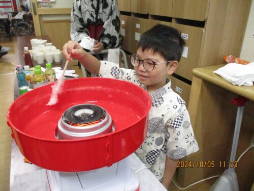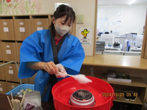 ちびっ子も来館してくれるので、綿菓子の作ろうよ
