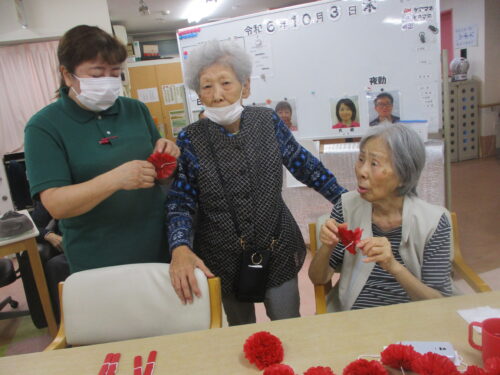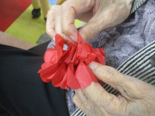今回は、ご利用者様と一緒に花飾りを作りました(/ω\)