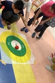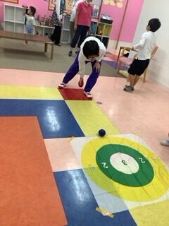 3回投げて点数を競いましたが、数にふれたり、手首の使い方を考えたり