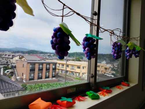 さわやかさがみはら館 製作( ´∀` ) (さがみはら館) 2024-10-07 2024-10-08 こんにちは! さがみはら館です☺ 3階廊下の飾りつけ🎐 季節も変わり 秋バージョンに 飾り付けられております(^^)/ お見事な葡萄ですね🍇 柿や紅葉も仲間入りです‼ (西島)