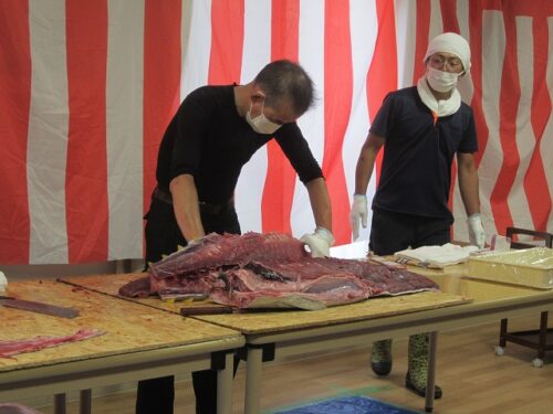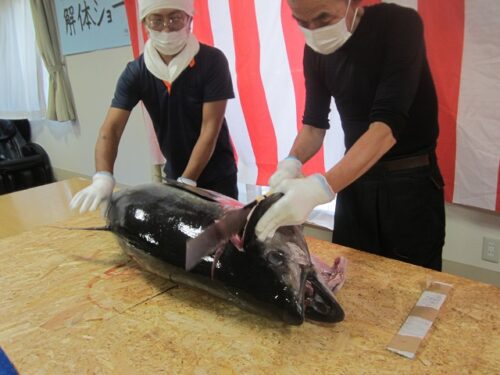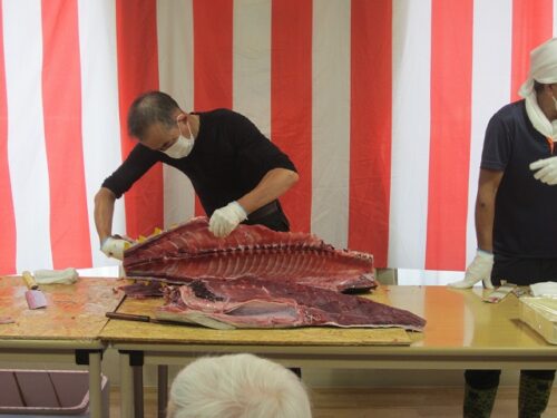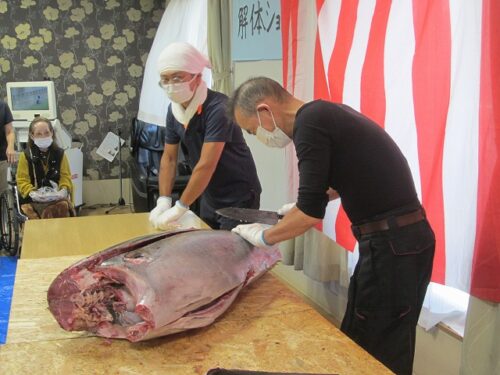 先月の15日にマグロ解体ショーを行いました