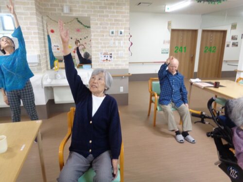 さわやかおけがわ館 2024-10-08 2024-10-08 今日は1日雨☔降りの寒い日でしたが ご入居者様は天気に左右されず元気に過ごされておりました。 今日の午前の体操は ♪梅干し体操♪をおこないました~ 担当 元気🙆