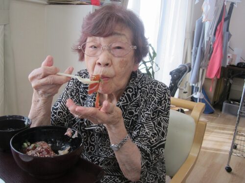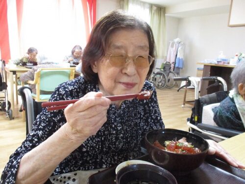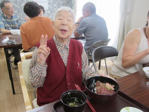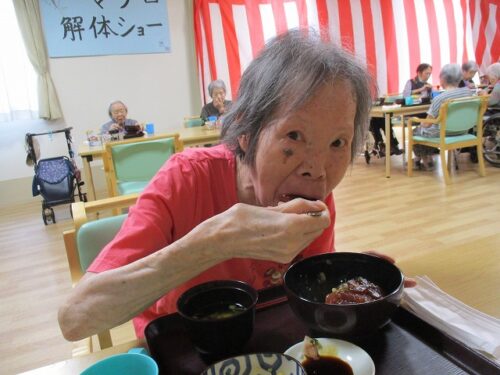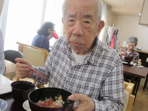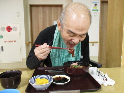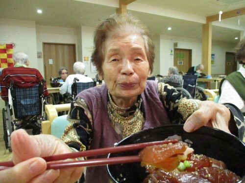 解体ショーの後は皆様にまぐろ漬け丼にしてご提供致しました