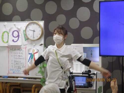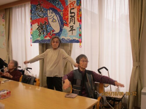 体操の後は令和6年10月9日水曜日、お天気は雨です