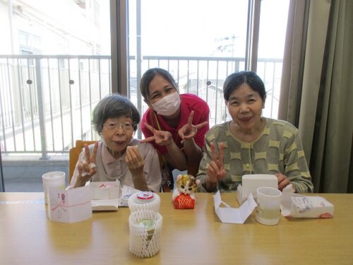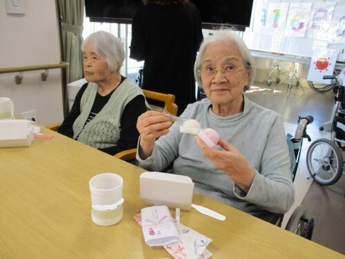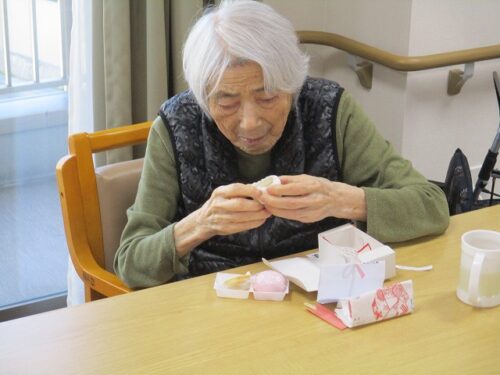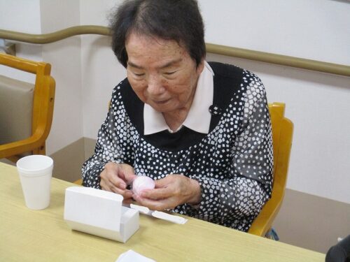 さわやかあかしの里 敬老会 ~つづき~ 2024-10-09 2024-10-09 敬老会の続きで... おやつの時間に、紅白饅頭を提供させていただきました。 皆様、談笑しながら、終始笑顔で召し上がられていました(*^^*)
