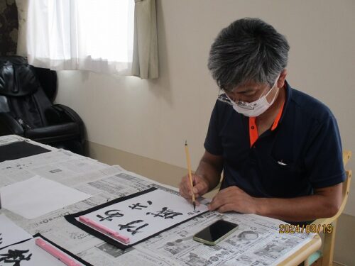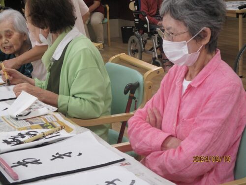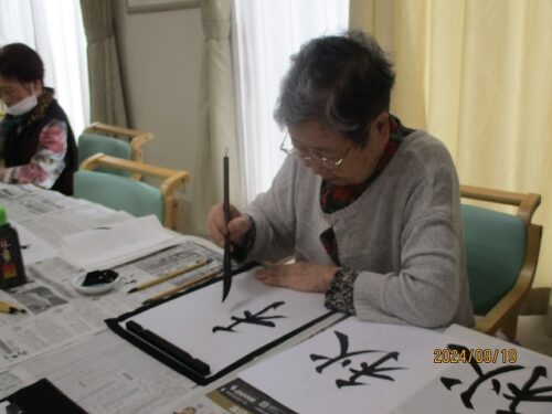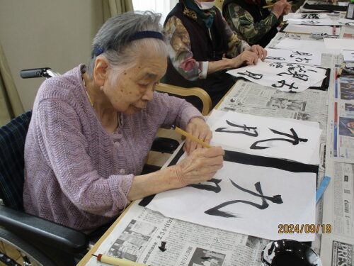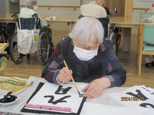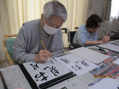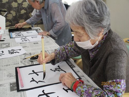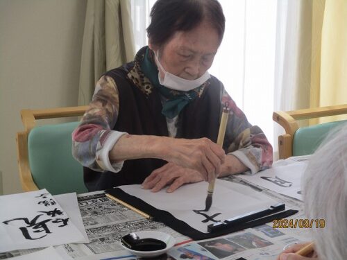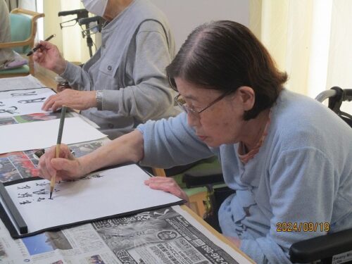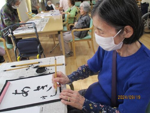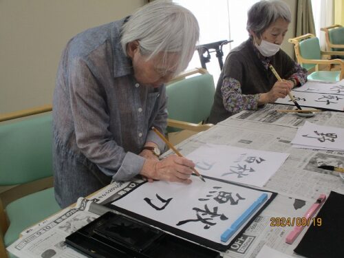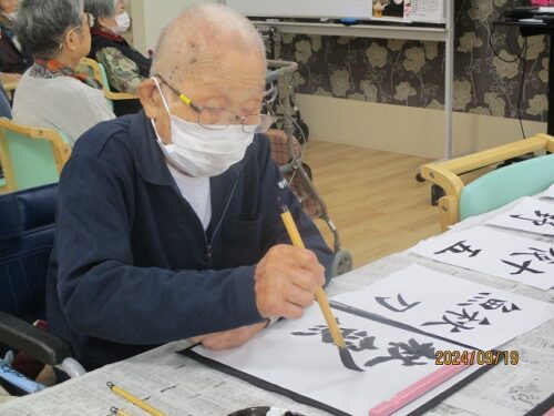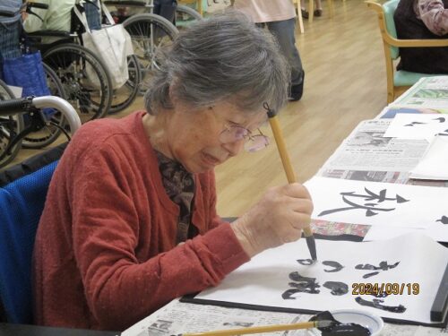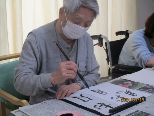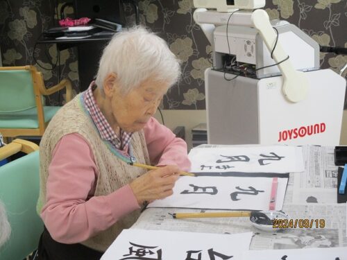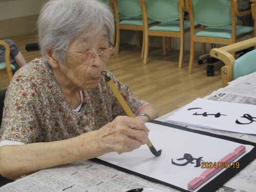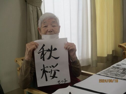 さわやかあびこ館 九月の習字レク (さわやかあびこ館 千葉県我孫子市介護付き有料老人ホーム) 2024-10-09 2024-10-09 9月19日は習字レクを午後から行いました 沢山の方々が参加して下さいました 秋をテーマにした文字を書いて頂きました 宮田副施設長が書かれた文字は・・・ 参加された後はカラオケを楽しまれていました さわやかあびこ館籾山💖