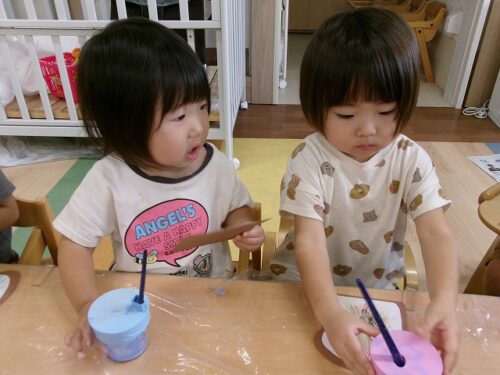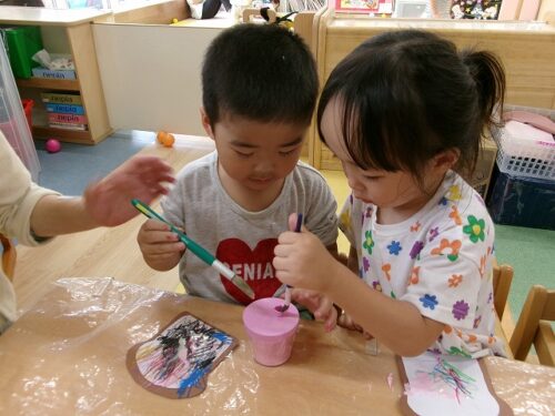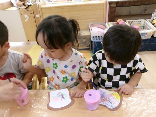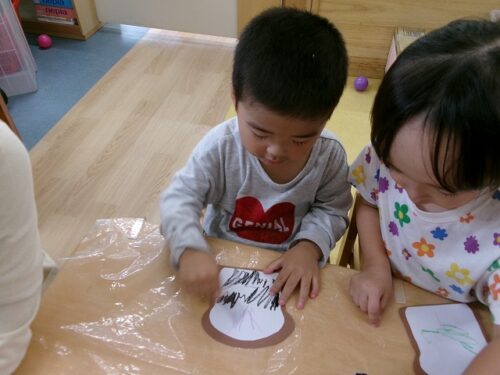 大きいお友だちはみんなで相談しながらヌリヌリヌリ…