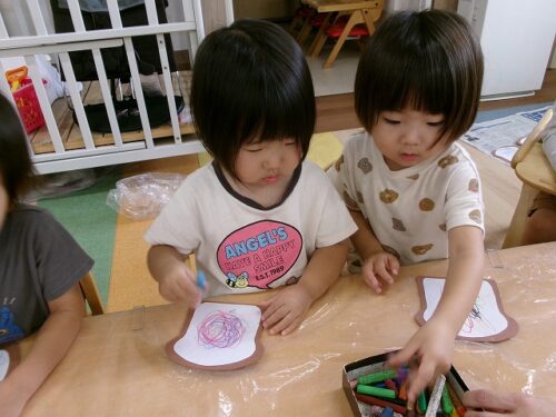今日は大人気の「パンどろぼう」の制作をしました🍞