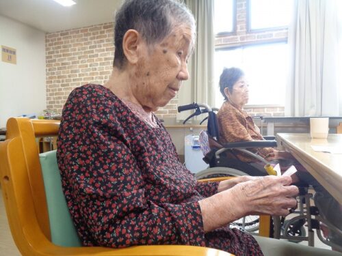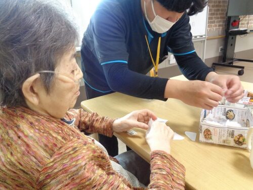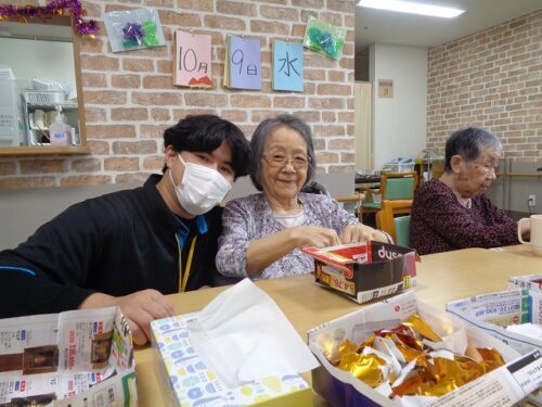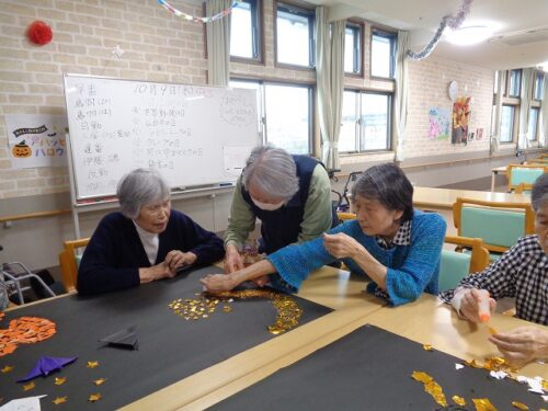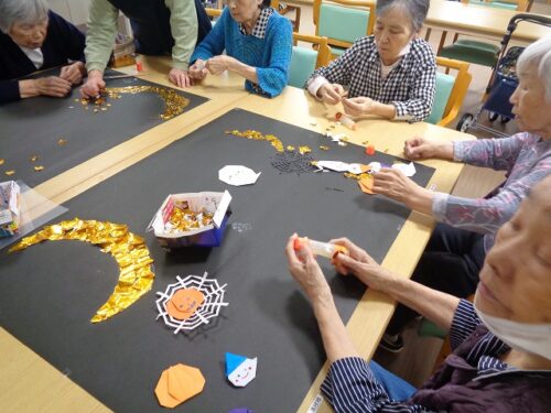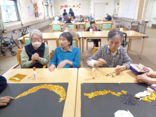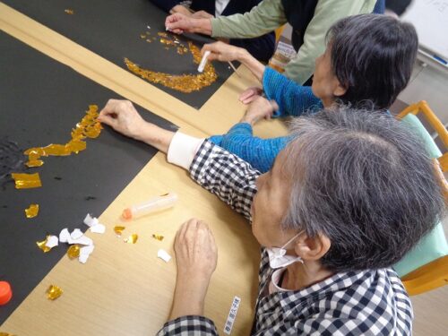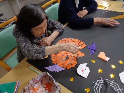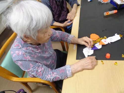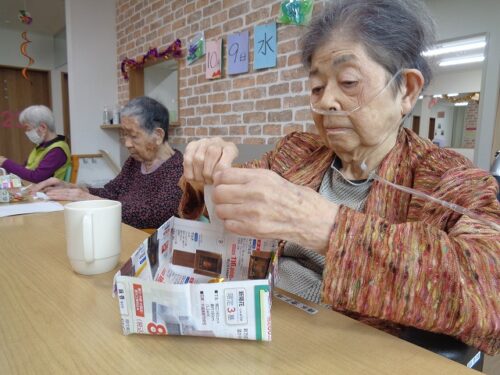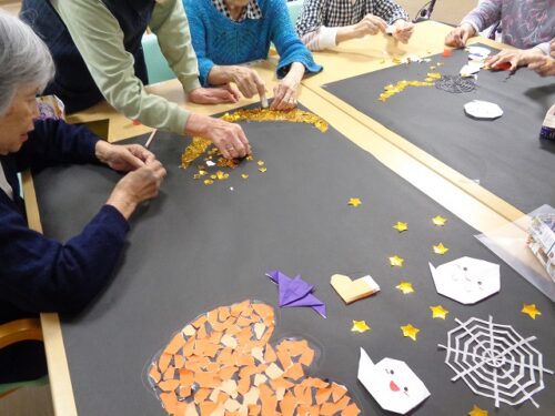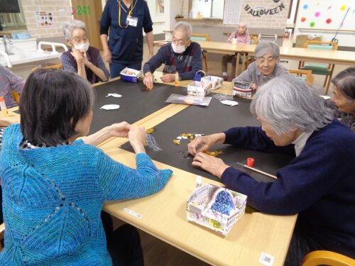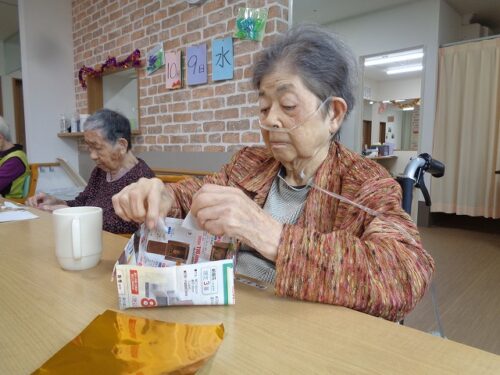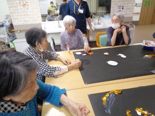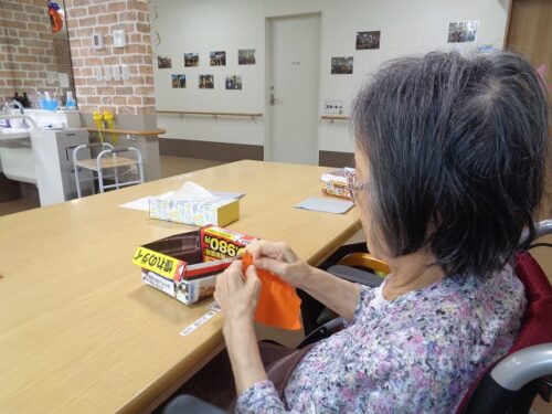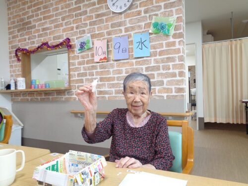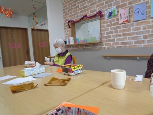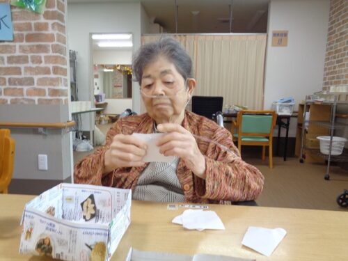 1階の皆様が何やら折り紙を小さくちぎっていただいています🙂