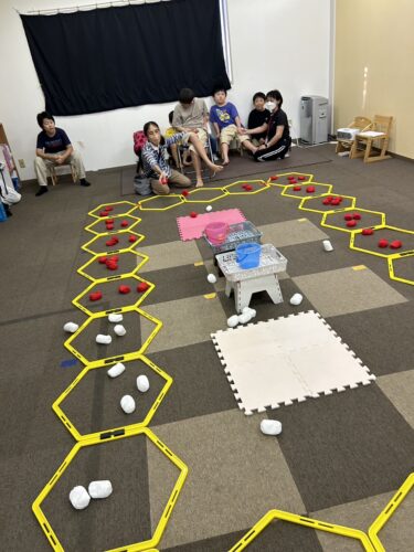 さわやか愛の家 さいじょう館 運動会‼️ 2024-10-11 2024-10-15 こんにちは😊 さわやか愛の家さいじょう館です。 今日は玉入れ競争を行っています。 赤組VS白組 がんばれ👍 あ〜😂カゴが落ちた〜💦 結果発表‼️ 赤組の勝ち🏆 みんなとても頑張ってくれました☆