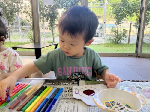 お絵描きやシール貼りをする所から始まりました🎨✍💕