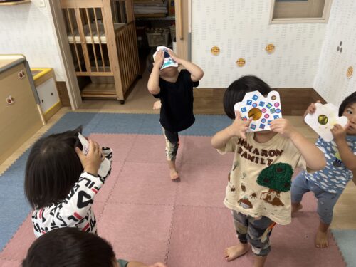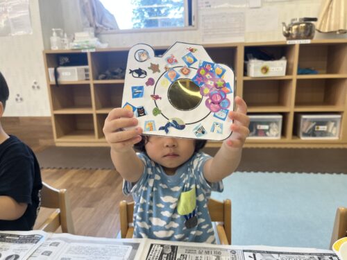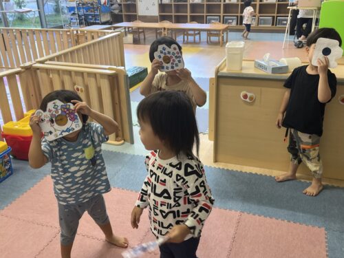 カメラ作りが終わったら、次はみんなで撮影ごっこをしました📸